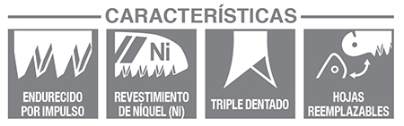 - Diseñado para corte en avance y retroceso. Corte rápido y preciso.
