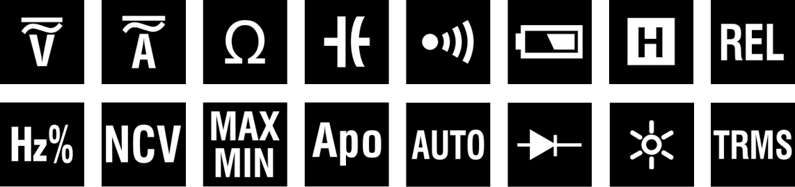 - Medición de tensión AC/DC (1.000V), corriente AC/DC (10A), resistencia, capacitancia y frecuencia.