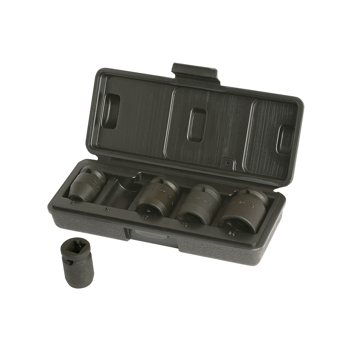 • Juegos de 5 vasos de impacto de 1/2” en caja de plástico (métrica)