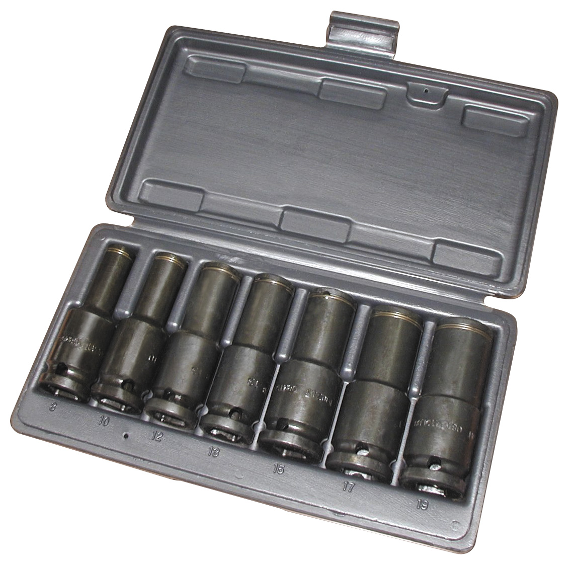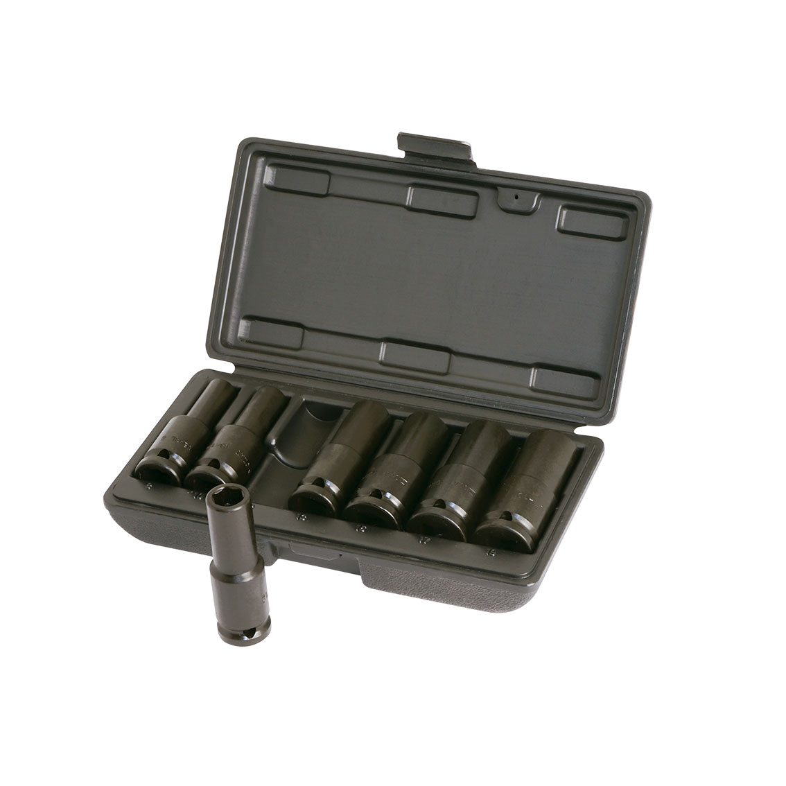• Juegos de 7 vasos de impacto largos de 1/2” en caja de plástico (métrica)