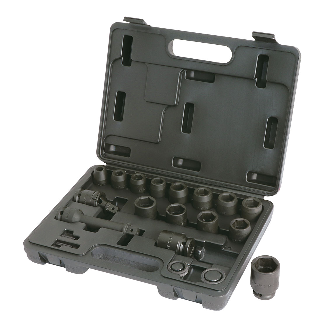 • Juegos de vasos de impacto de 1/2” en caja de plástico (pulgadas)